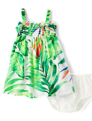 Baby Girls Matching Family Tropical Smocked Dress - blue