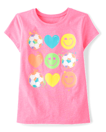 FEATURES: Soccer ball & happy face graphic design, tagless label