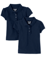 Conjunto de 2 polos de piqué con volantes y manga corta de uniforme para niñas pequeñas